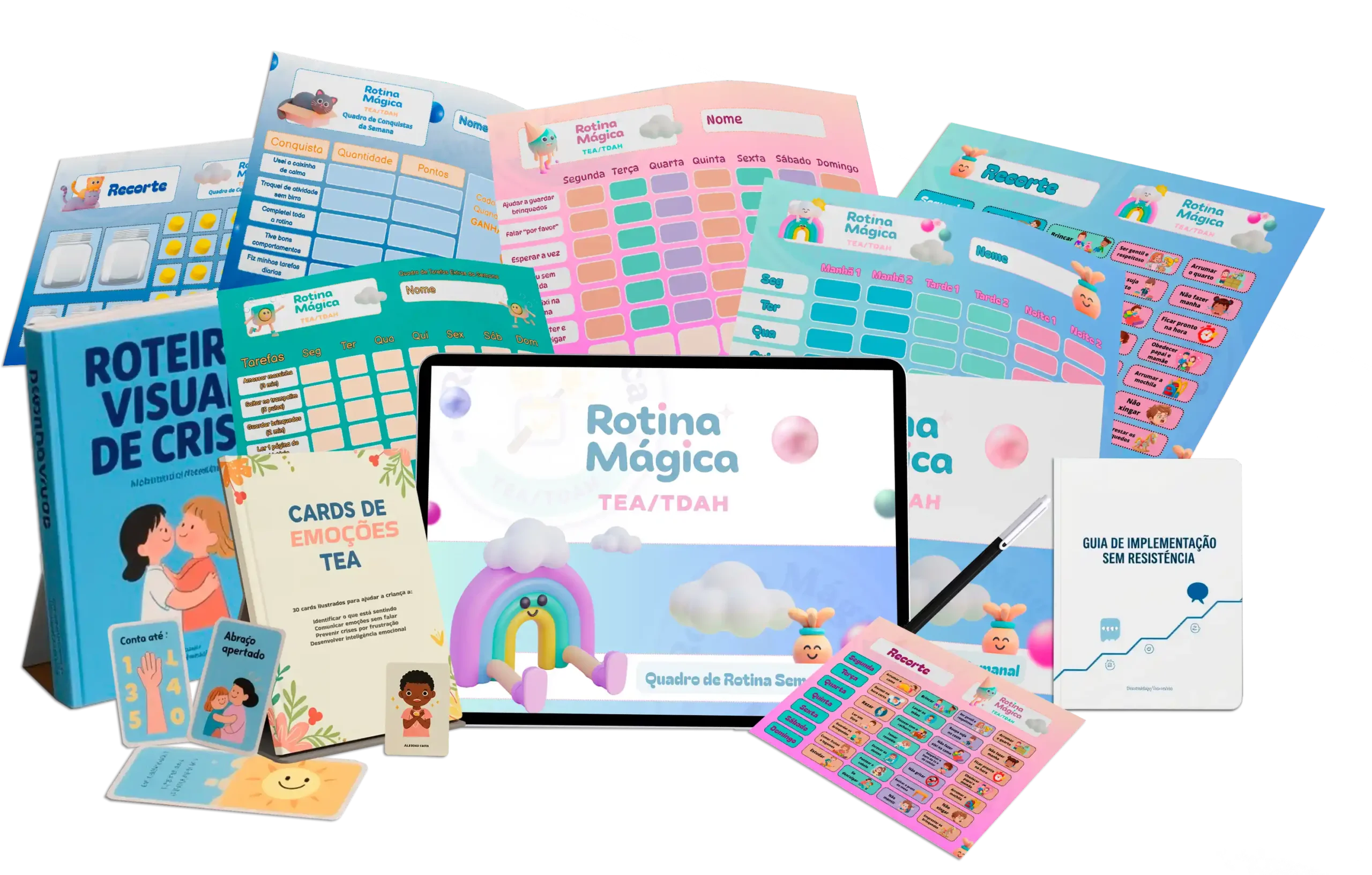 Transforme a rotina da sua casa com os Quadros de Rotina Mágica que envolve seus filhos, organiza o dia e traz paz pro seu LAR